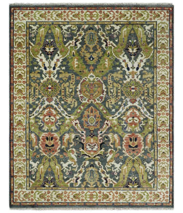 Antique look Hand knotted Green, Ivory and Gray Traditional Large design Multi Size wool Area Rug
