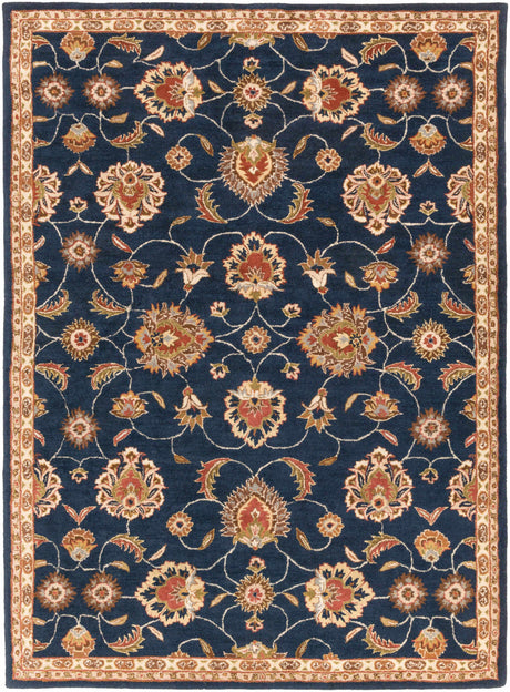 Ivory and Brown distressed finished Traditional Floral Low Pile Multi Size wool Area Rug