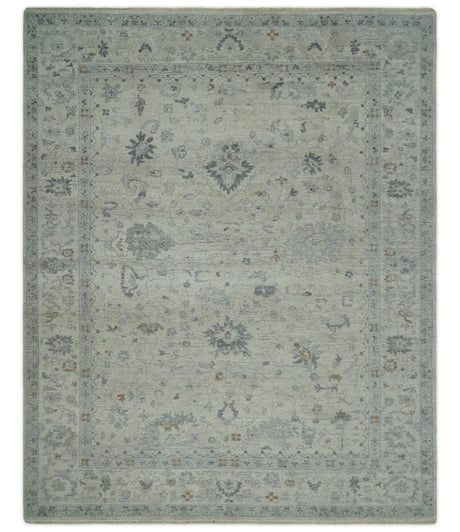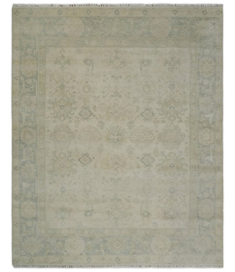 Antique Finish Multi Size Hand Knotted Oushak Silver and Beige Traditional Area Rug
