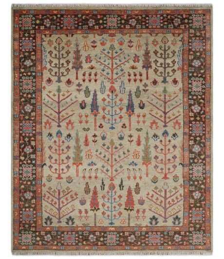 Beige, Brown and Rust Tree of Life Hand Knotted Traditional Multi Size Wool Rug