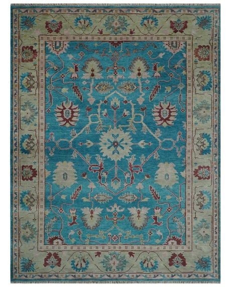 Modern Oushak Multi Size Silver and Teal Vibrant Colorful Hand knotted Wool Area Rug