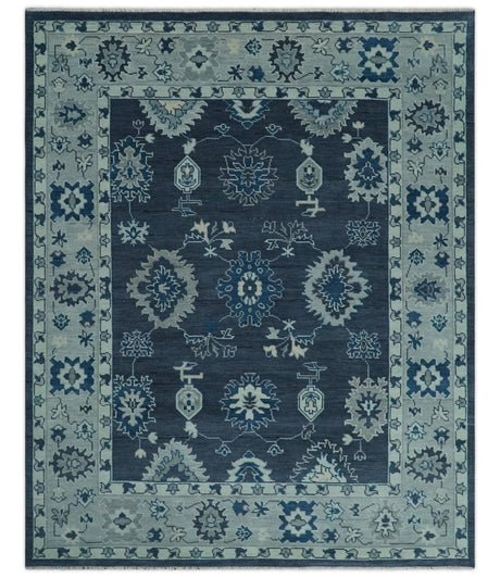 Hand Knotted Blue, Silver and Ivory Traditional Oushak Vintage Style Wool Rug