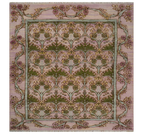 Hand Knotted Pink, Green and Beige Floral Traditional Antique Style Wool Area Rug