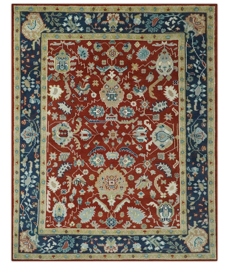 Premium Style Rust, Blue and Beige Hand Knotted Traditional Heriz wool Area Rug