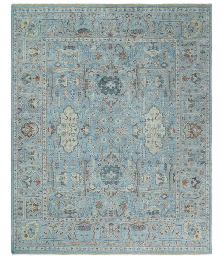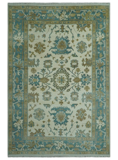 Ivory and Teal Hand Knotted Traditional Oriental Oushak Multi size wool area rug