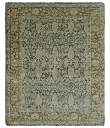 Antique look vintage style Green, Beige and Brown traditional Hand Knotted Multi Size wool rug
