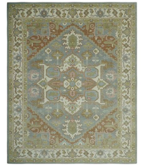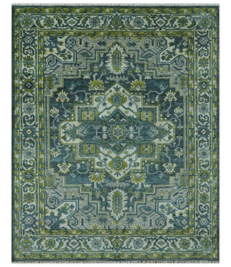 Green, Blue and Gray Hand Knotted Traditional Heriz Multi Size wool area rug