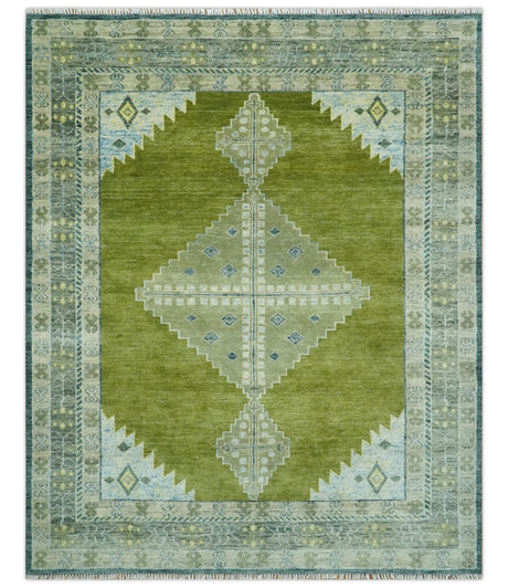 Green and Olive Hand Knotted Traditional Oushak Multi Size wool area rug