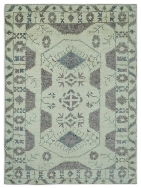 Antique look Charcoal, Ivory and Olive Hand Knotted Traditional Oriental Oushak wool rug