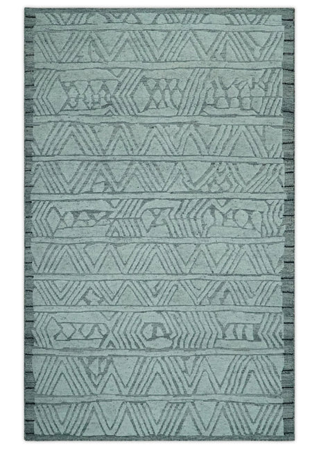 Antique Style Hand Knotted Teal, Gray and Green Traditional multi Size wool rug