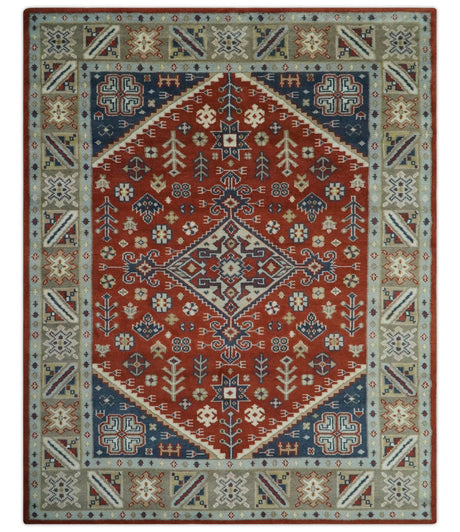 Rust and Blue Hand Knotted Traditional Medallion Mamluk Design Multi Size wool Rug