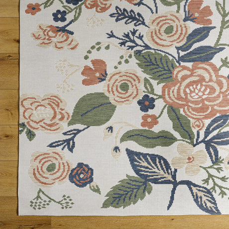 Ponto Cream & Blue Floral Area Rug - Clearance