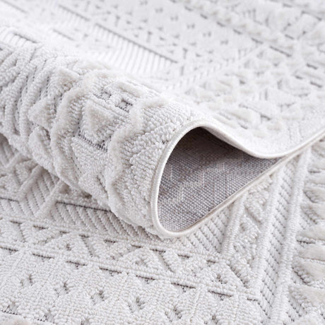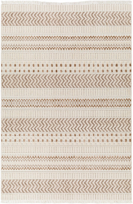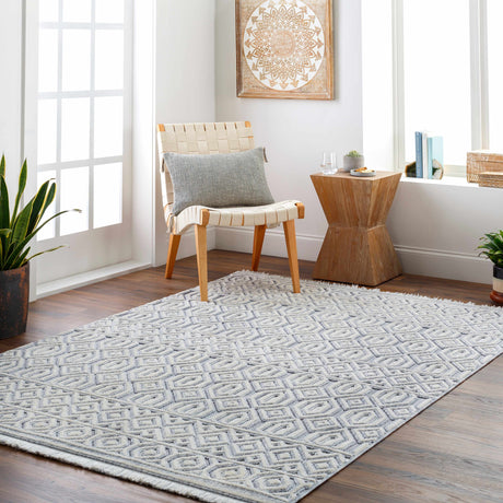 Ivory Cira Textured Trellis Fringe Area Rug - Clearance