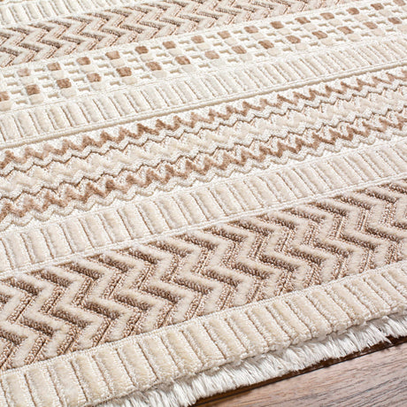 Eiko Beige Textured Saxony Rug with Fringes - Clearance