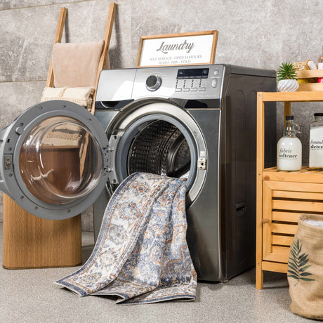 Aurum Blue & Beige Washable Area Rug - Clearance
