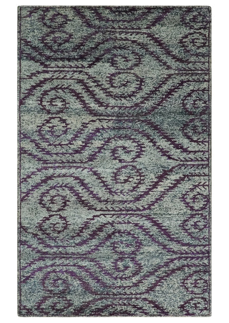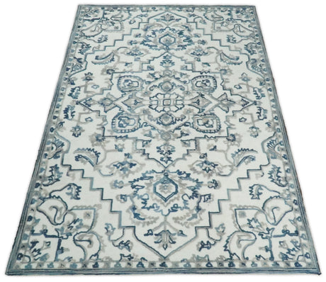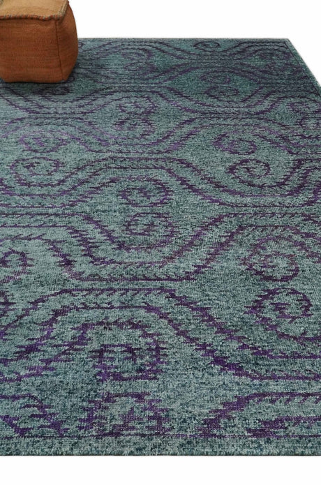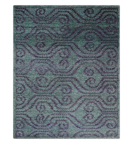 5x8 and 9x12 Handmade Classic Vintage Design Blue and Silver Wool Area Rug | TRDCP12158