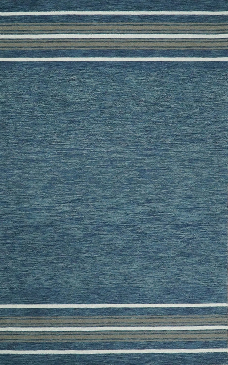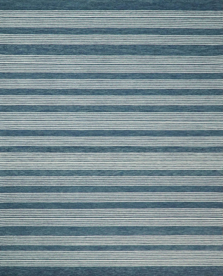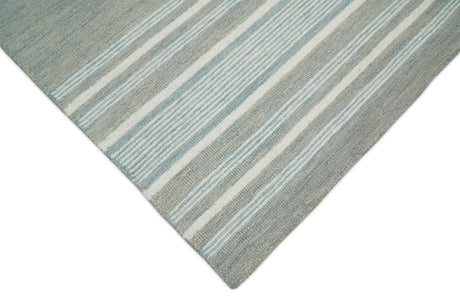 5x8 and 8x10 Hand Made Woolen Modern Stripes White and Blue Area Rug | NAU002