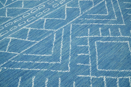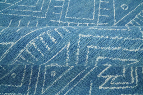 5x8 and 8x10 Hand Made Woolen Modern Blue and Ivory Area Rug | EVE001