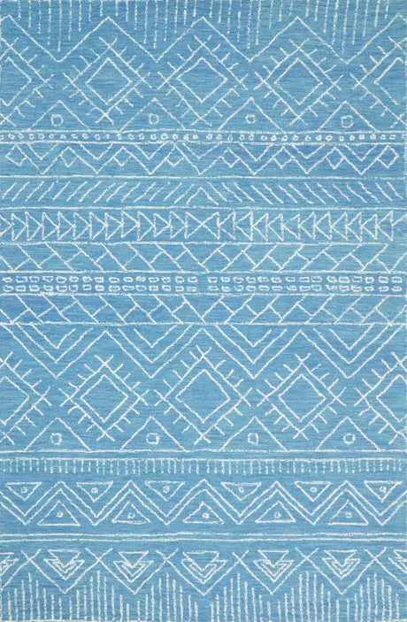 5x8 Hand Hooked Blue and Beige Wool Textured Loop Area Rug | GAR11