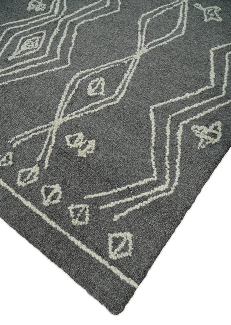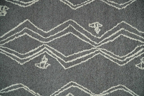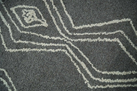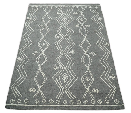 5x8 Gray and White Tribal Hand Hooked Textured Loop Area Rug | TRIB1