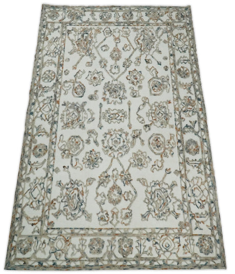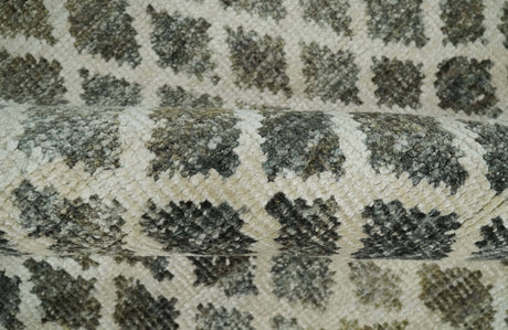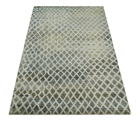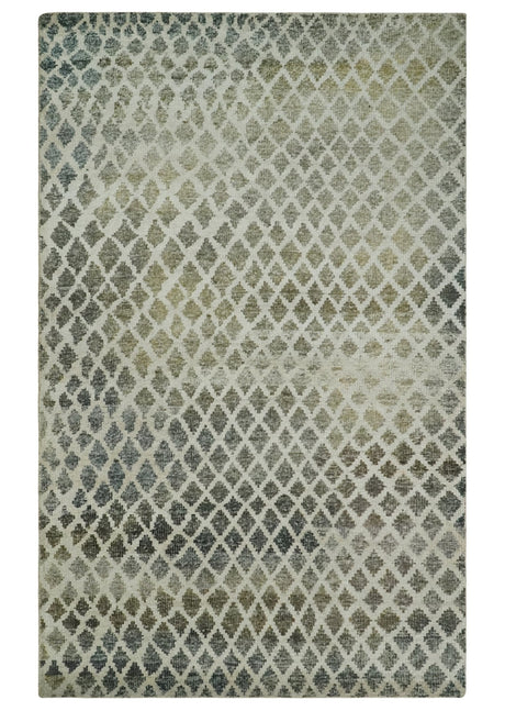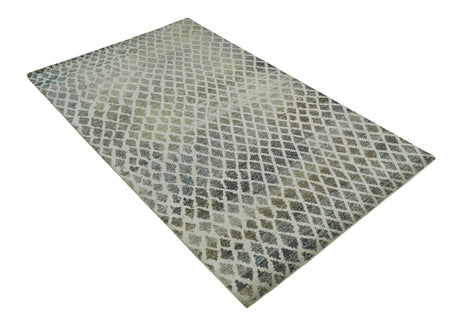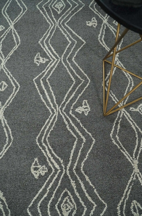 5x8 and 8x10 Hand Made Woolen Modern Grey and Ivory Area Rug | NAU001