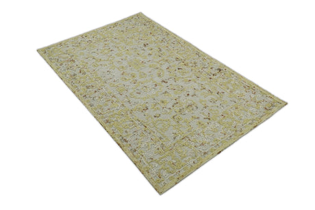 5x8 Hand Hooked Yellow and Ivory Wool Textured Loop Area Rug | GAR6