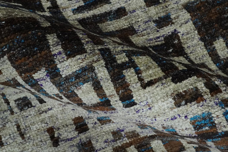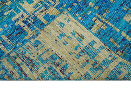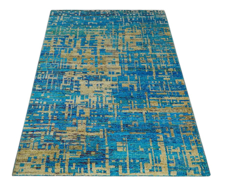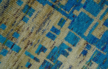5x8 Hand Knotted Beige and Blue Modern Abstract Contemporary Recycled Silk Area Rug | OP101