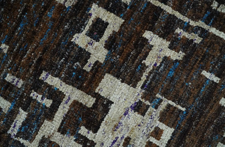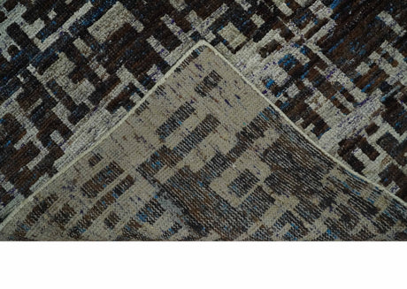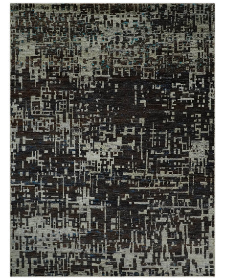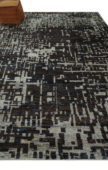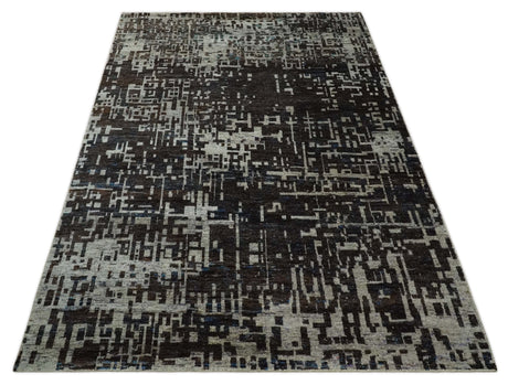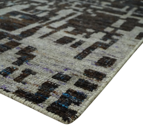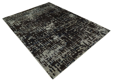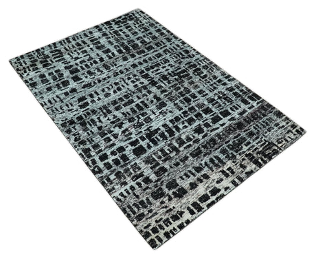 5x8 Hand Knotted Black and Silver Modern Abstract Contemporary Recycled Silk Area Rug | OP120