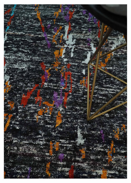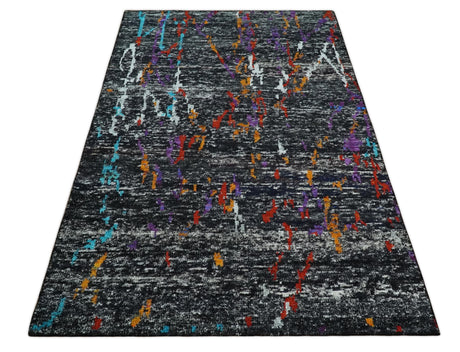 5x8 Hand Knotted Black, Ivory and Rust Modern Abstract Contemporary Recycled Silk Area Rug | OP132