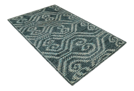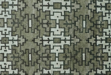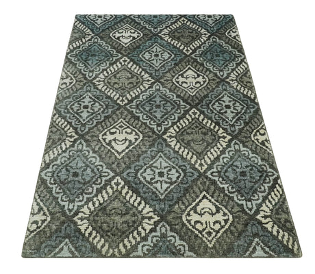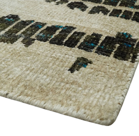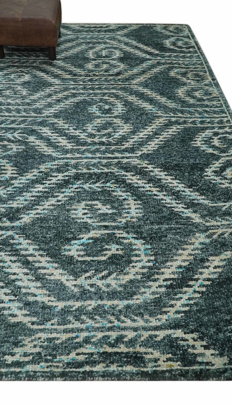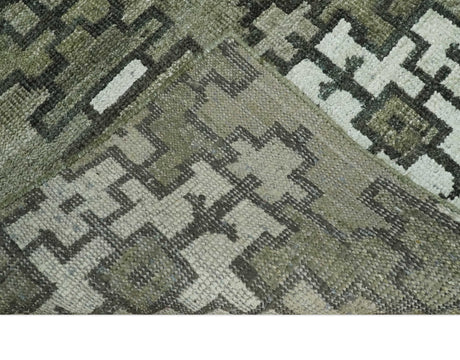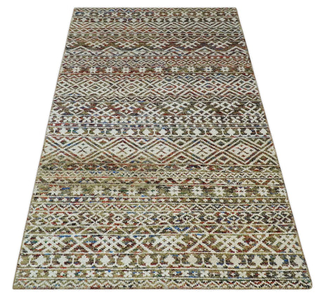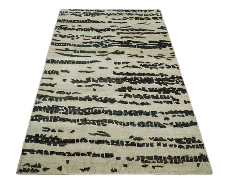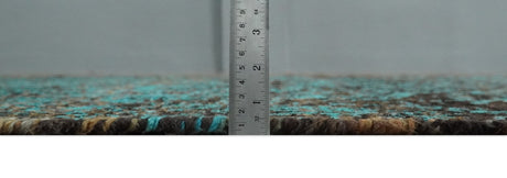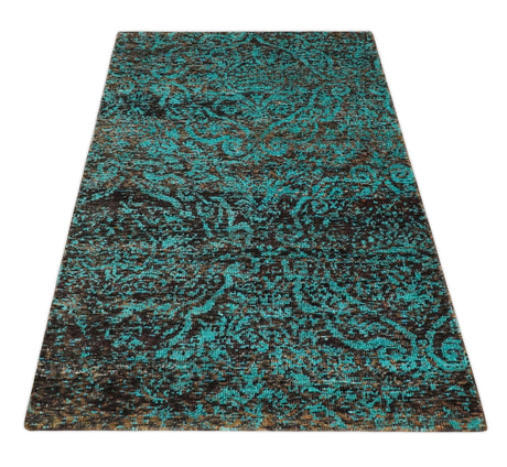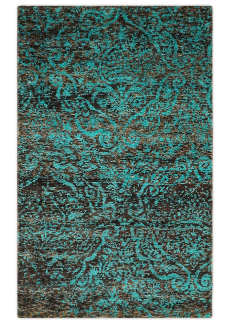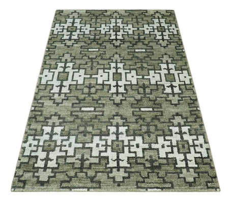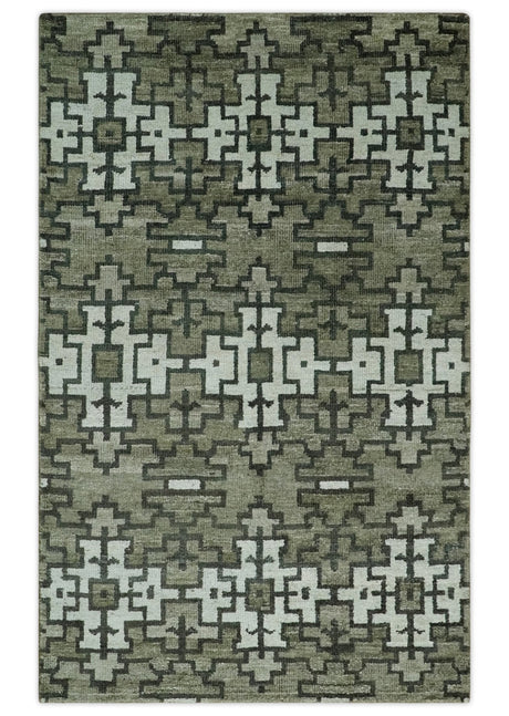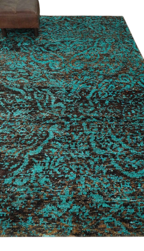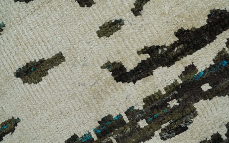 5x8 Modern Abstract Aqua, Olive and Brown Hand Knotted wool Area Rug
