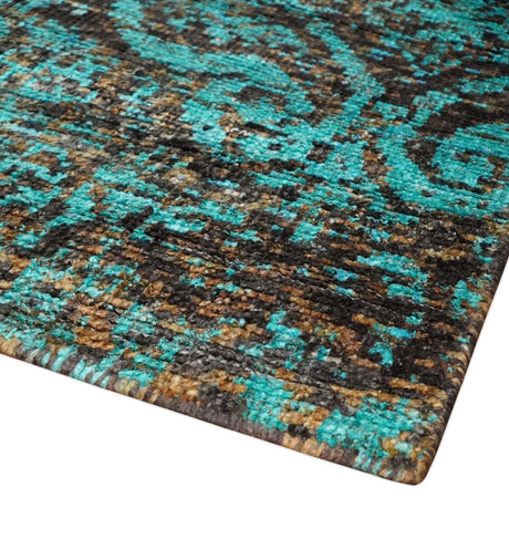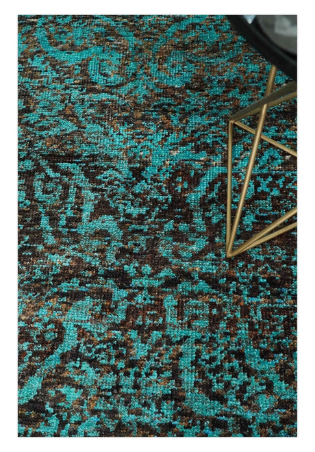 5x8 Hand Knotted Blue and Brown Modern Persian Style Contemporary Recycled Silk Area Rug | OP103