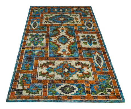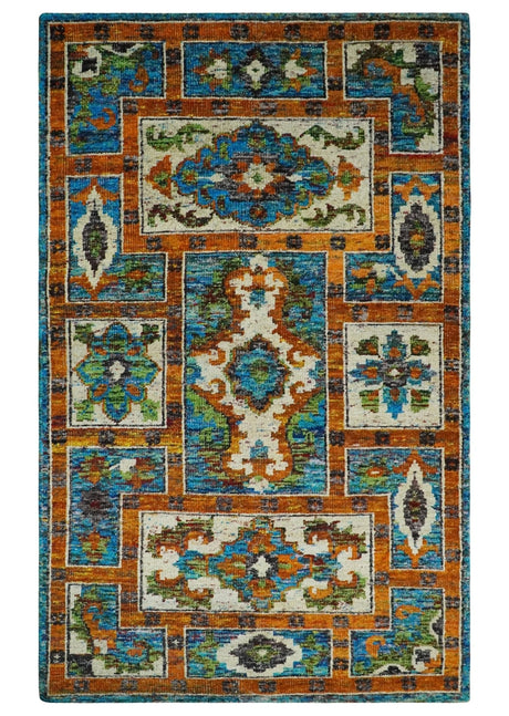 5x8 Handmade Rust and Blue made with fine wool Area Rug | TRDCP11858