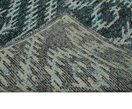 5x8 Hand Knotted Charcoal, Ivory and Blue Modern Abstract Contemporary Recycled Silk Area Rug | OP68