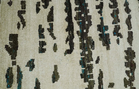 5x8 Hand Knotted Ivory and Brown Modern Abstract Contemporary Recycled Silk Area Rug | OP105