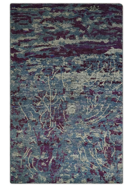 5x8 Hand Knotted Ivory, Blue and Purple Modern Abstract Contemporary Recycled Silk Area Rug | OP72