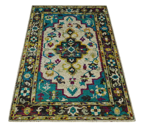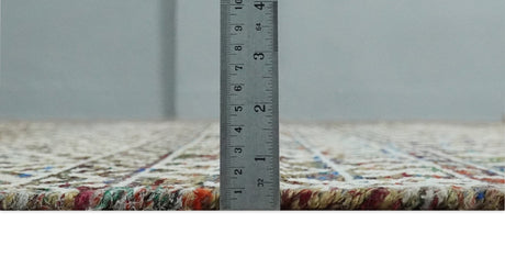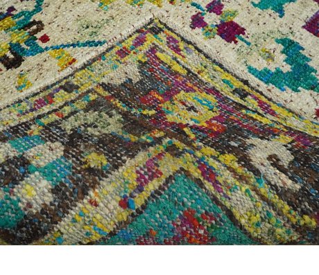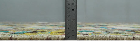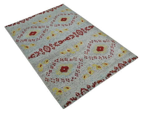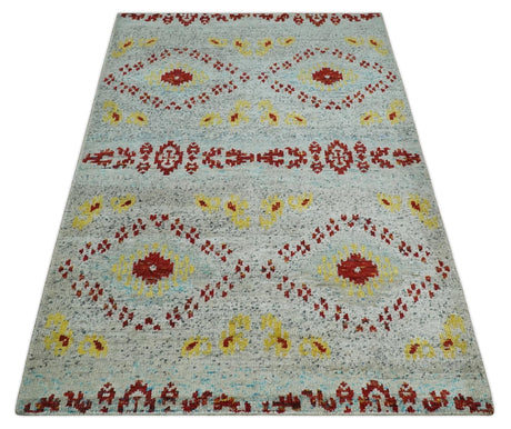 5x8 Hand Knotted Ivory, Red and Yellow Persian made of Recycled Silk Area Rug | OP95