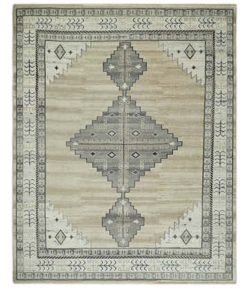 Antique look Beige and Gray Hand knotted Custom Made Oushak wool Area Rug