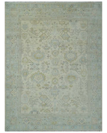 Custom Made Gray and Gold Hand knotted Traditional Oushak wool Area Rug