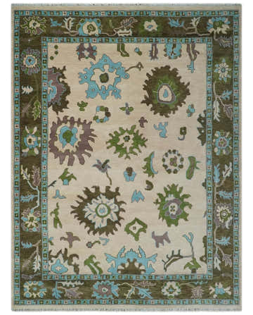 Custom Made Green Hand Knotted Antique Design Traditional Oushak wool area rug