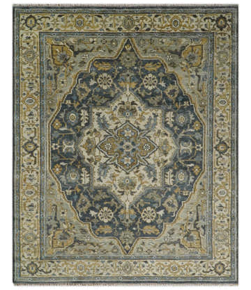 Blue and Rust Turkish Design Traditional Serapi Hand Knotted Wool Area Rug