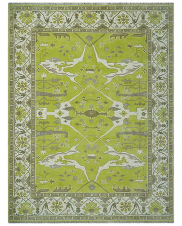 Green and Ivory Hand knotted Oriental Oushak Multi Size wool Area Rug