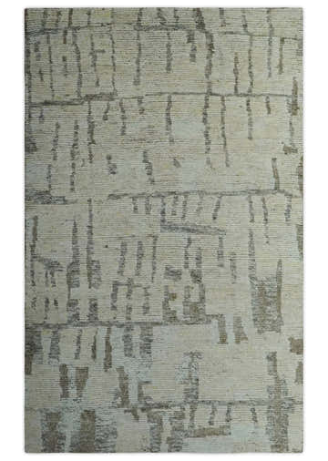 Custom Made Beige, Olive and Gray Hand Knotted Modern Abstract wool Area Rug