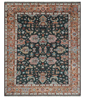 Custom Made Turkish Style Rust and Charcoal Traditional Medallion Hand knotted wool Area Rug