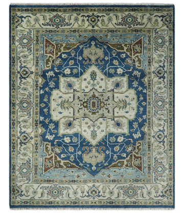 Antique look Blue, Ivory and Olive Traditional Heriz Medallion Multi Size wool Area Rug