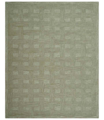 Custom Made Olive and Ivory Modern Geometrical Hand Tufted wool rug