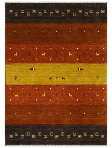 Custom Made Rust, Brown, Gold and Charcoal Geometrical Stripes Design wool area rug