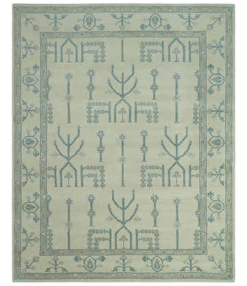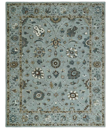Light Blue, Beige and Gray Traditional Oriental Oushak Hand Tufted Custom Made wool Area Rug