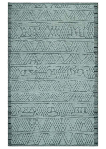 Modern Geometrical Silver and Gray Chevron Design Hand Carved wool Rug
