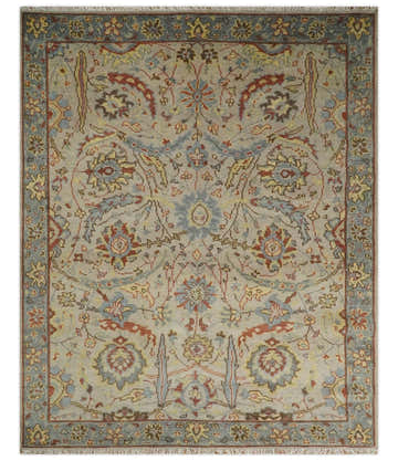 • Custom Made Hand Knotted Gray, Blue and Beige Traditional Oushak Wool Area Rug