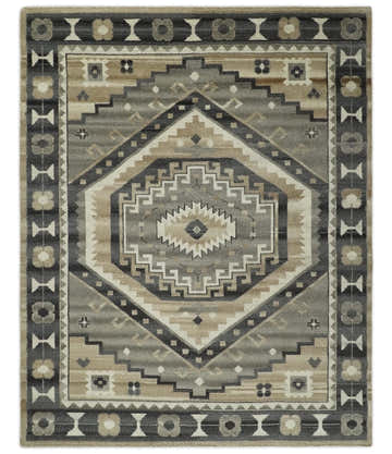 • Hand Knotted Ivory, Charcoal and Beige Traditional Medallion Natural Wool Multi Size Area Rug, Kids, Living Room and Bedroom Rug